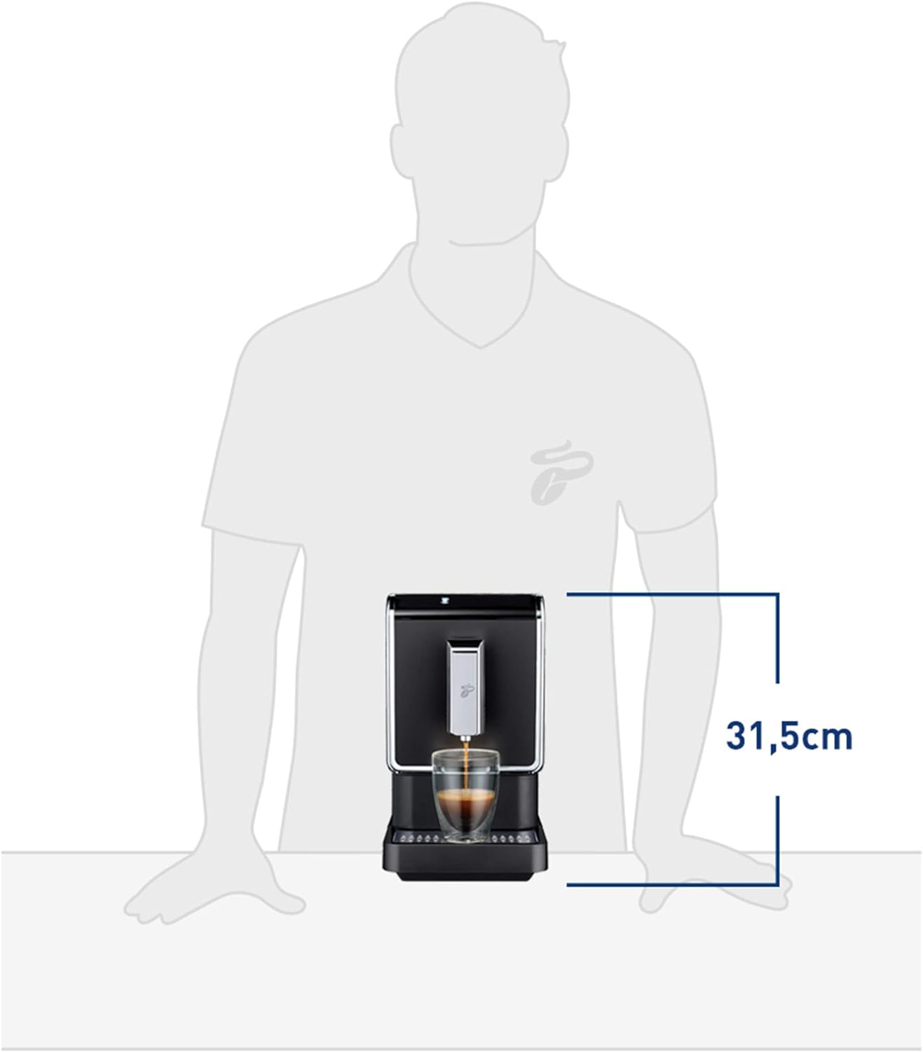 طراحی صرفه جویی در فضا: با عرض تنها 18 سانتی متر، دستگاه تمام اتوماتیک Tchibo در هر آشپزخانه ای قرار می گیرد و دهانه آن دارای نور فنجانی است و ارتفاع آن قابل تنظیم است.