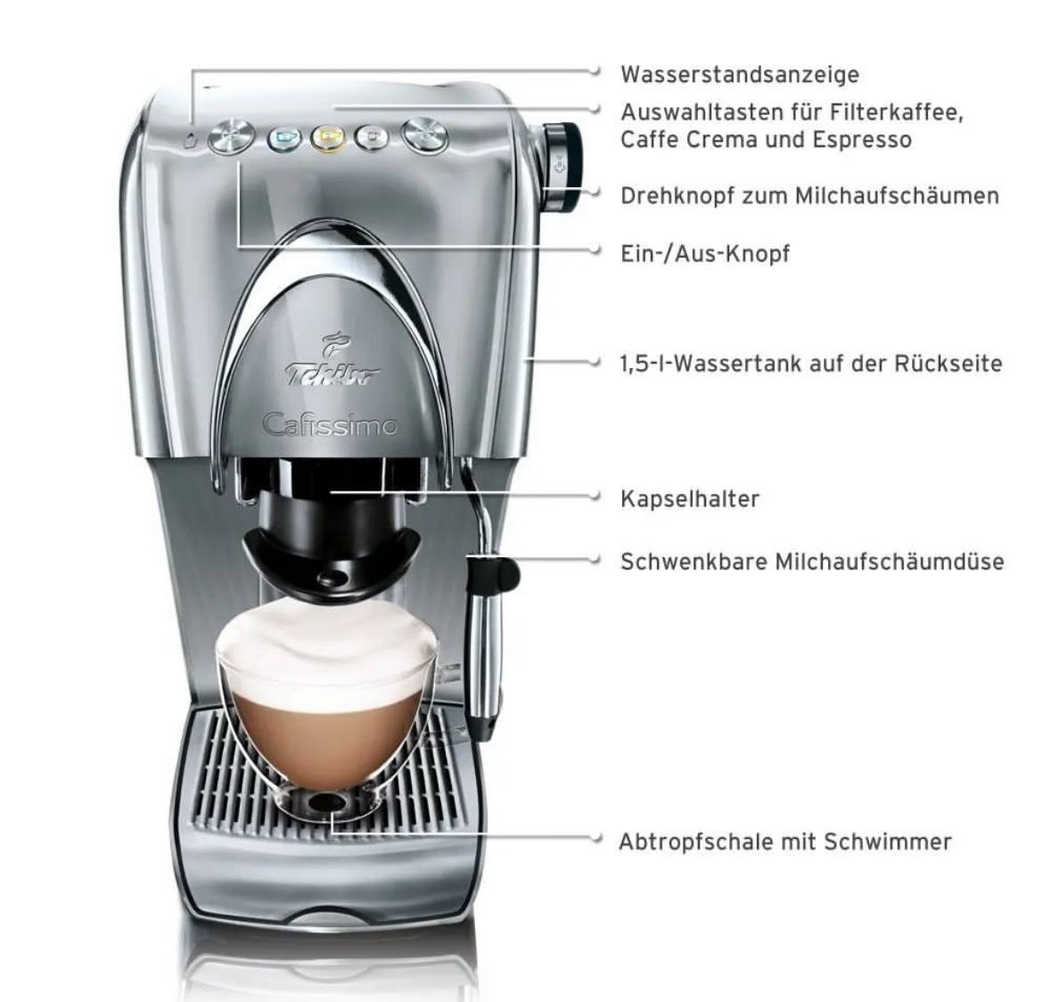 ثبت اختراع سیستم دم‌آوری سه فشار: سیستم دم‌آوری Cafissimo به اسپرسو، کرم‌های کافه، قهوه فیلتر و کاپو چینو لاته ماکیاتو و چای شما اجازه می‌دهد عطر و بوی شدیدی داشته باشید.لوله ناظری کننده شیرعملکردآب گرم برای چای آسان و ناظر بخار با فشار بخار عالی برای درست کردن فوم و گرم کردن شیر و آبجوش برای چای.