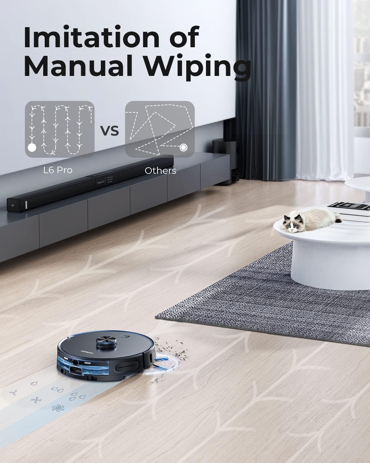 Laresar L6 Pro به یک موتور قدرتمند با توان مکش حدود 3000 پاسکال مجهز است که میتواند به راحتی گردوغبار، خردهریزها و موهای حیوانات خانگی را جمعآوری کند. این دستگاه دارای حالتهای مختلف مکش (اقتصادی، استاندارد و حداکثر) است که بسته به نوع سطح و میزان آلودگی قابل تنظیم هستند. برس مرکزی ضد گره خوردگی نیز طراحی شده است تا موهای بلند یا پرز فرش در آن گیر نکند. به همین دلیل این ربات گزینهای ایدهآل برای خانههایی است که حیوانات خانگی دارند و نیاز به نظافت روزانه مو و پرز وجود دارد.