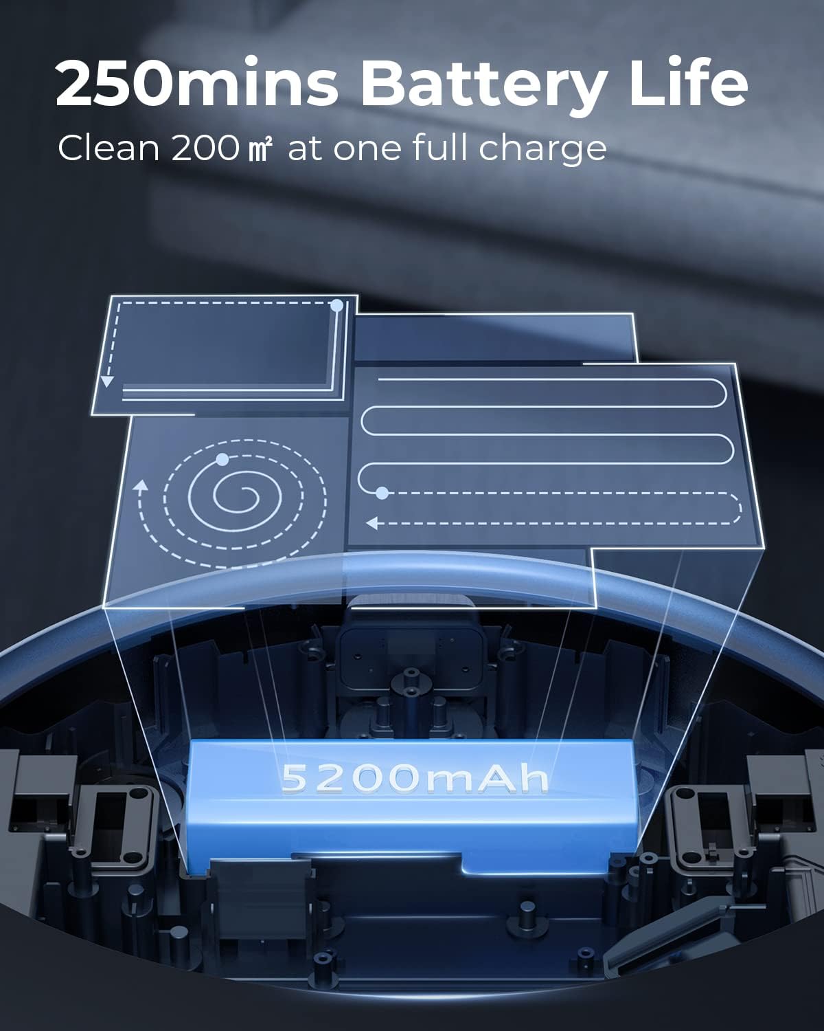 این جارورباتیک از یک باتری قدرتمند 5000 میلیآمپر ساعتی بهره میبرد که امکان کارکرد تا 200 دقیقه را تنها با یک بار شارژ فراهم میکند. در صورتی که شارژ باتری به پایان برسد، ربات به طور خودکار به ایستگاه شارژ باز میگردد و پس از شارژ شدن، کار نظافت را از همان نقطهای که متوقف کرده بود ادامه میدهد. این قابلیت باعث میشود حتی خانههای بزرگ نیز بدون نگرانی از نیمهکاره ماندن فرآیند، به طور کامل تمیز شوند.
