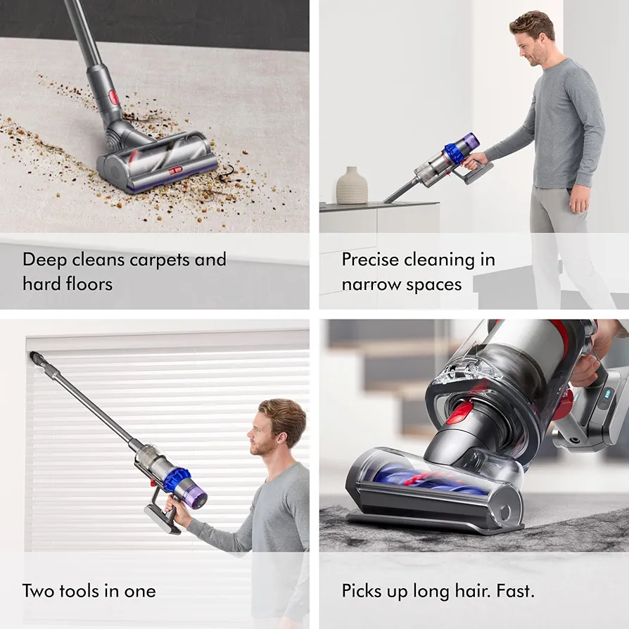 اکنون با سه سری تمیزکننده برای تمیز کردن همه کاره. سری تمیزکننده Submarine™ کفهای سخت را میشوید و بهطور همزمان زبالههای مرطوب و خشک را از بین میبرد. سری تمیزکننده Fluffy Optic™ گرد و غبار نامرئی را روی کفهای سخت آشکار میکند. سری تمیزکننده Digital Motorbar™ با قابلیت گرهزدایی، فرشها و کفهای سخت را بدون گرهخوردگی عمیق تمیز میکند و قدرت مکش را با نوع کف تطبیق میدهد.⁴ یک حسگر پیزوالکتریک بهطور هوشمندانه قدرت و زمان کارکرد را بر اساس زبالههای جمعآوریشده بهینه میکند و همه چیز را روی صفحه LCD گزارش میدهد.⁴ این جاروبرقی بیسیم همهکاره با یک کلیک به یک جاروبرقی دستی تبدیل میشود تا بتوانید از بالا، پایین و هر جایی بین این دو را تمیز کنید. با 2 سال گارانتی و پشتیبانی مادامالعمر Dyson ارائه میشود.