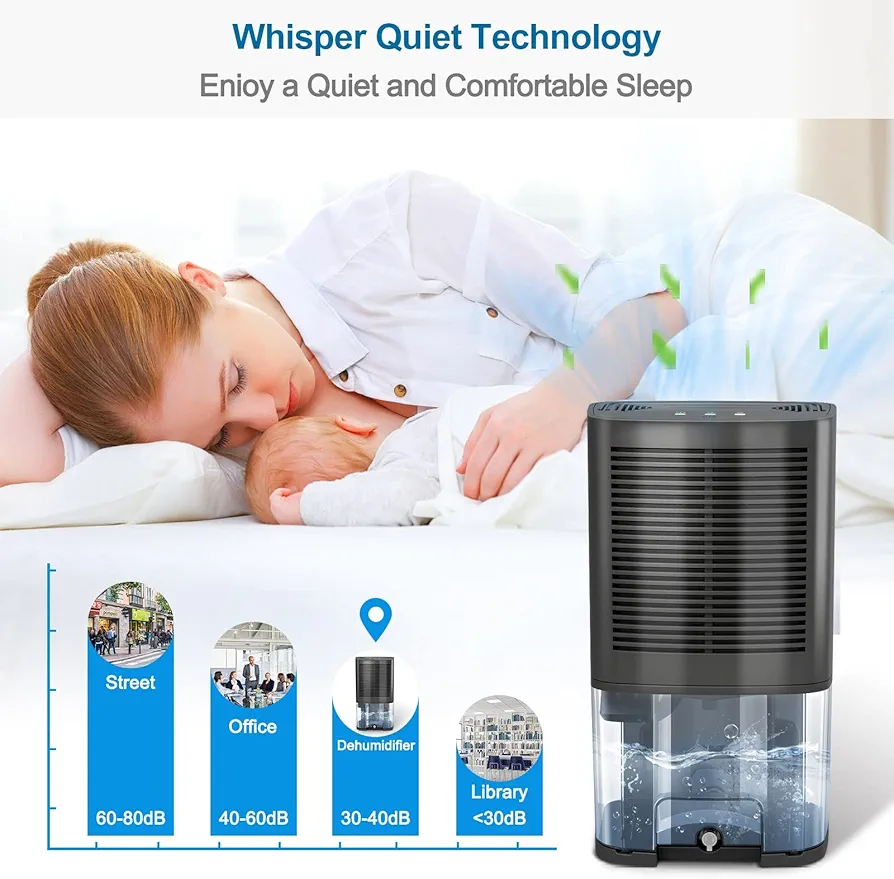 رطوبت گیرهای خانگی بی صدا: رطوبت گیر حمام هوشمند از اصل پلتیر پیروی می کند و بدون کمپرسور صدا کمتر از 40 دسی بل است که محیطی آرام را برای شما فراهم می کند و خواب شما را مختل نمی کند. نکته: این رطوبت گیر اتاق کوچک را حداقل 190 اینچ دورتر از تخت خود قرار دهید، این صدا هنگام راه اندازی دستگاه بلندتر می شود، اما به آرامی دسی بل را کاهش می دهد و به طور پیوسته کار می کند. اگر مشکلی وجود دارد، لطفا در هر زمان با ما تماس بگیرید.