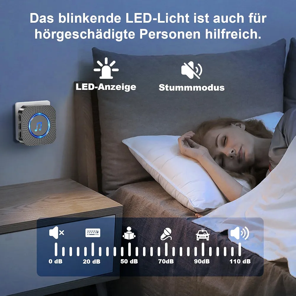 گیرنده دستگاه به چراغ LED Flashing مجهز است که هنگام به صدا درآمدن زنگ، نور چشمکزن تولید میکند. این ویژگی برای افراد کمشنوا یا محیطهایی که نیاز به حالت بیصدا دارند بسیار کاربردی است.