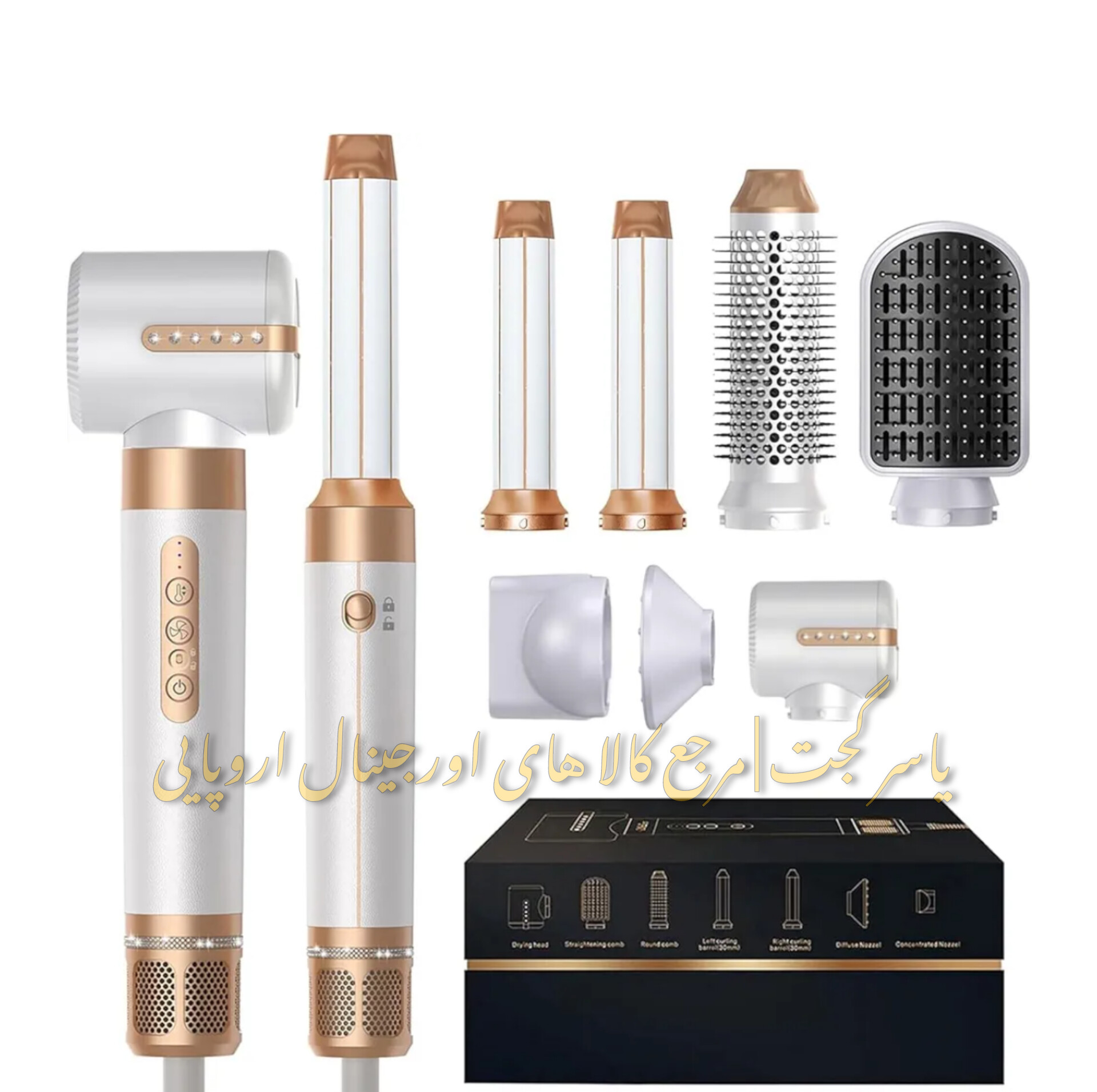 【𝟕 𝐈𝐍 𝟏 𝐇𝐚𝐢𝐫 𝐃𝐫𝐲𝐞𝐫 𝐒𝐭𝐲𝐥 𝐀𝐩𝐩𝐥𝐢𝐚𝐧𝐜𝐞𝐬】این کیت حالت دهنده مو دارای هفت سر قابل تعویض است که شامل سشوار، برس هوای گرم، شانه صاف کننده، فر مو چرخشی خودکار، برس موی یک مرحله ای، برس حالت دهنده صاف کننده و برس مو می باشد. با استفاده از این گزینه های متنوع، می توانید بدون زحمت به مدل موهای دلخواه خود برسید و در عین حال در زمان ارزشمند خود صرفه جویی کنید.