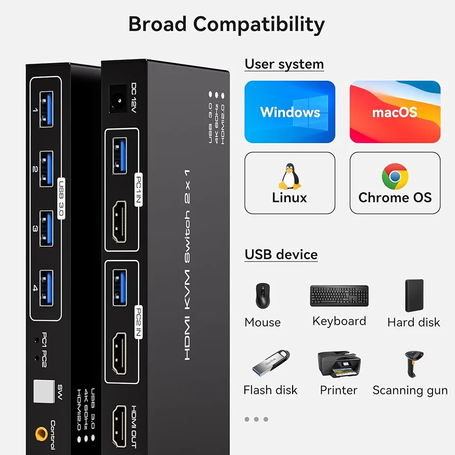 1. برای استفاده از حالت «چند مانیتور» باید کارت گرافیک/سیستم شما خروجی مناسب برای هر مانیتور را داشته باشد (مثلاً سه HDMI یا ترکیب HDMI/DP). KVM صرفاً سوییچ می‌کند؛ «تبدیل» بین HDMI و DP را معمولاً انجام نمی‌دهد.