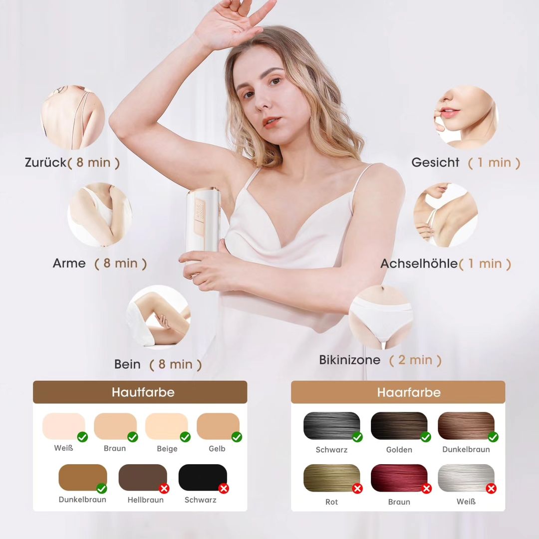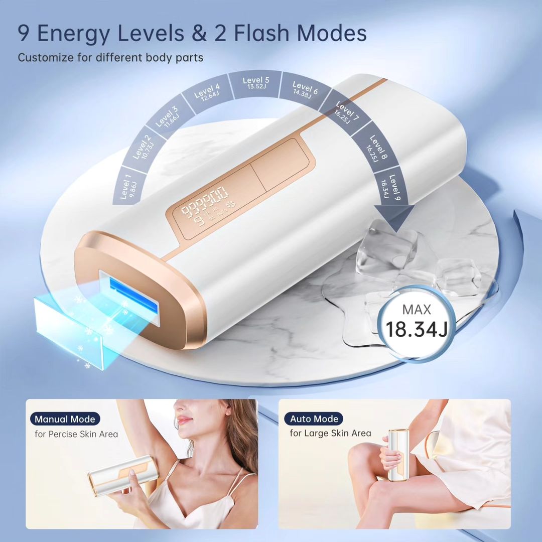 💞 استفاده آسان: 9 سطح انرژی قابل تنظیم تمام نیازهای رفع موهای زائد را برآورده می کند.  ما استفاده از دستگاه حذف موهای زائد IPL را از سطح 1 توصیه می کنیم. پس از 7-8 هفته استفاده، اثر حذف موهای زائد پوست 96% حاصل می شود. (توجه: برای پوست های قهوه ای تیره، سیاه و سایر پوست های تیره مناسب نیست)