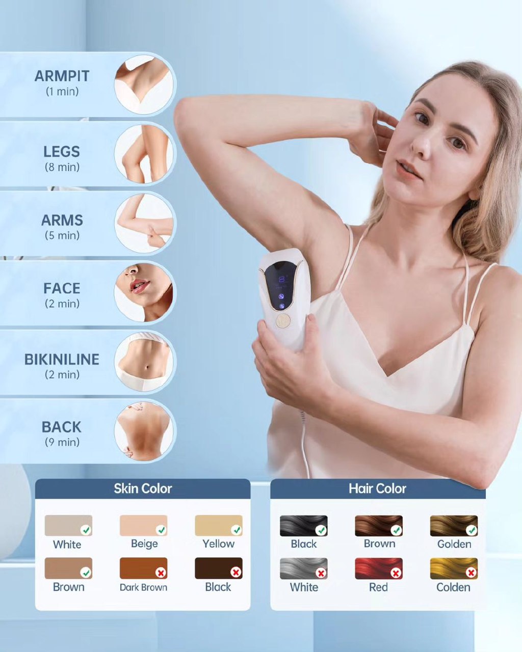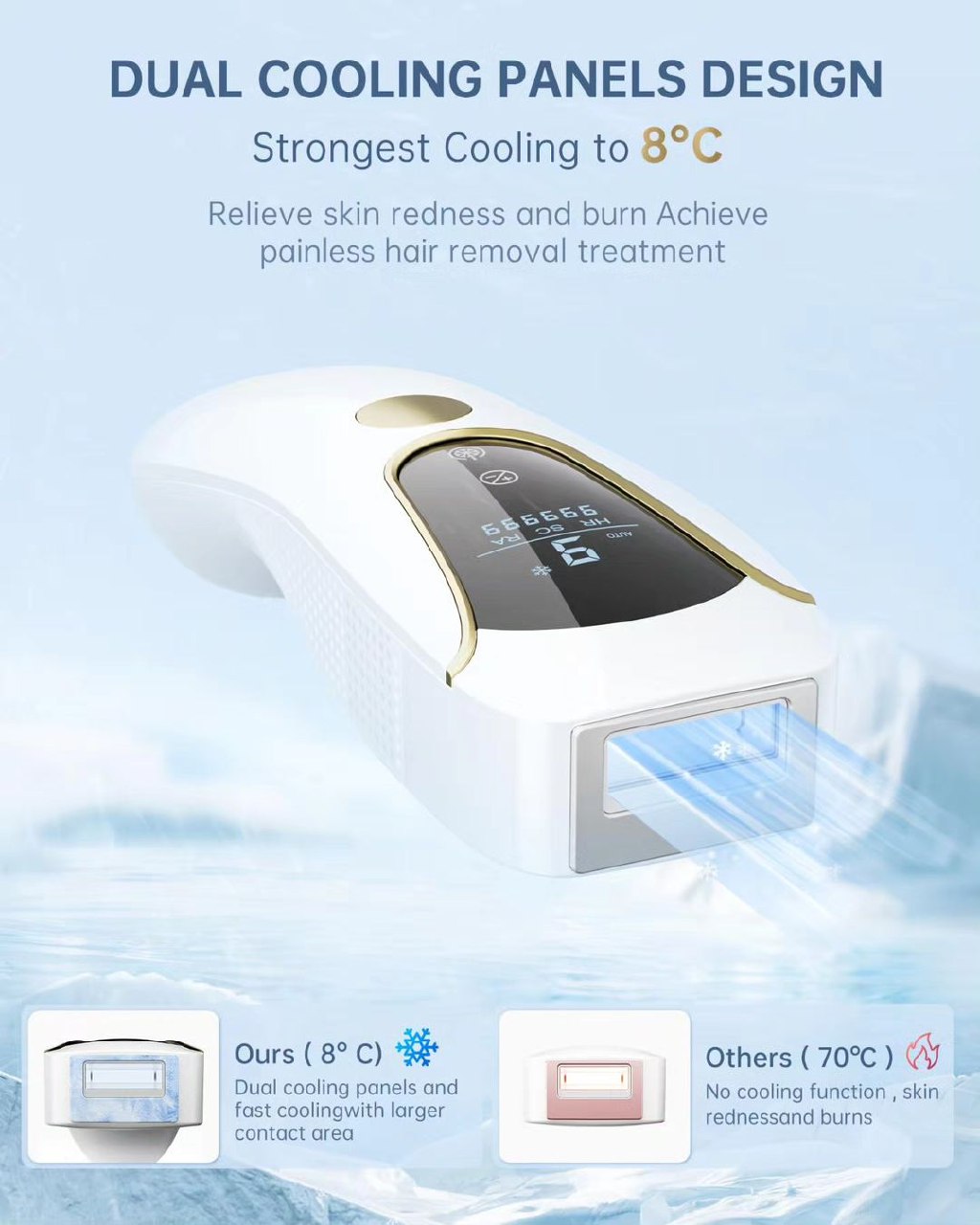 لیزر موهای زائد خانگی زنانه و مردانه، حذف موهای زائد با دستگاه IPL با خنک کننده یخ Air 15