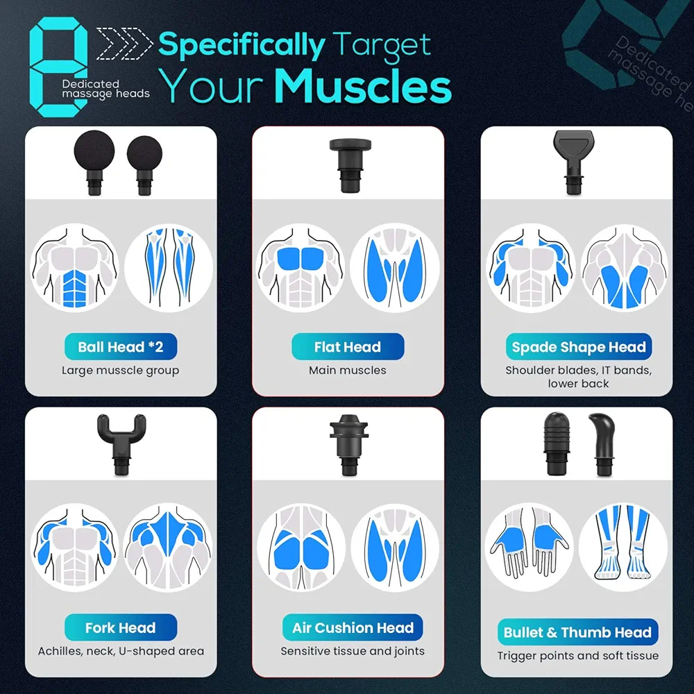 همراه با ۸ سری متنوع / هدهای ماساژ برای گروه‌های مختلف عضلانی و کاربردهای مختلف.