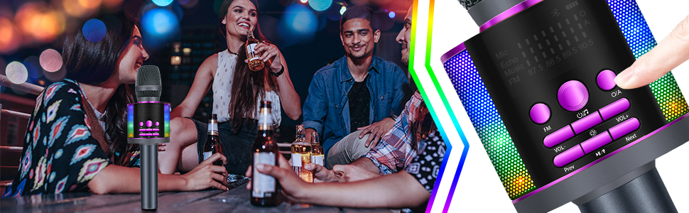 زمان مهمانی/خانواده خود را متفاوت کنید. اورجینال/همراهی، صداهای جادویی، چراغ های ال ای دی، ایجاد یک محیط کارائوکه در زمان واقعی KTV، میکروفون کارائوکه دستی با صدای دلخواه شما، شما در میان مهمانان می درخشید.
