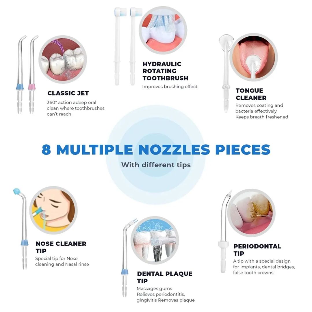 برای تمیز کردن دندان با 8 نوک جت، 5 حالت نخ آب ، 300 میلی لیتر IPX7 فلوسر برقی ضد آب، قابل حمل آب برای دندان شارژی با کابل USB و کیف مسافرتی