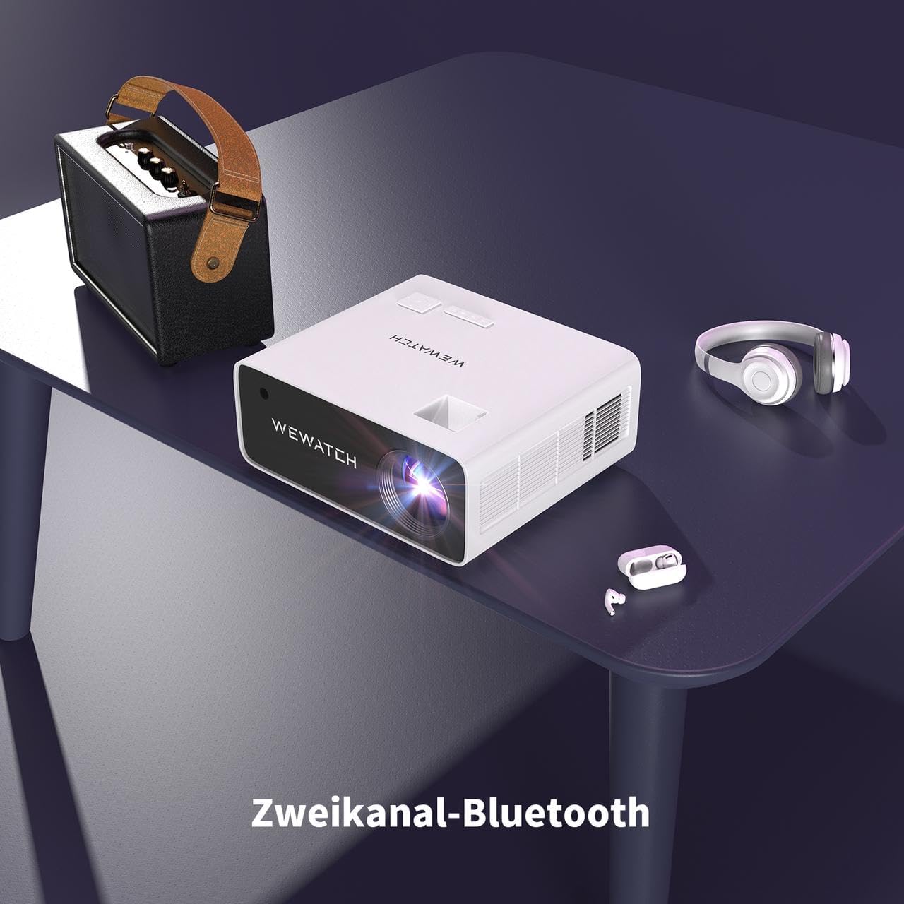 بلوتوث دو طرفه 4.2 پروژکتور WEWATCH V51 Pro دارای عملکرد فرستنده و گیرنده بلوتوث 4.2 است، به این معنی که می توانید پروژکتور خود را با نوار صوتی بلوتوث برای کیفیت صدای بهتر جفت کنید یا حتی بهتر می توانید از پروژکتور به عنوان یک بلندگوی مستقل استفاده کنید.