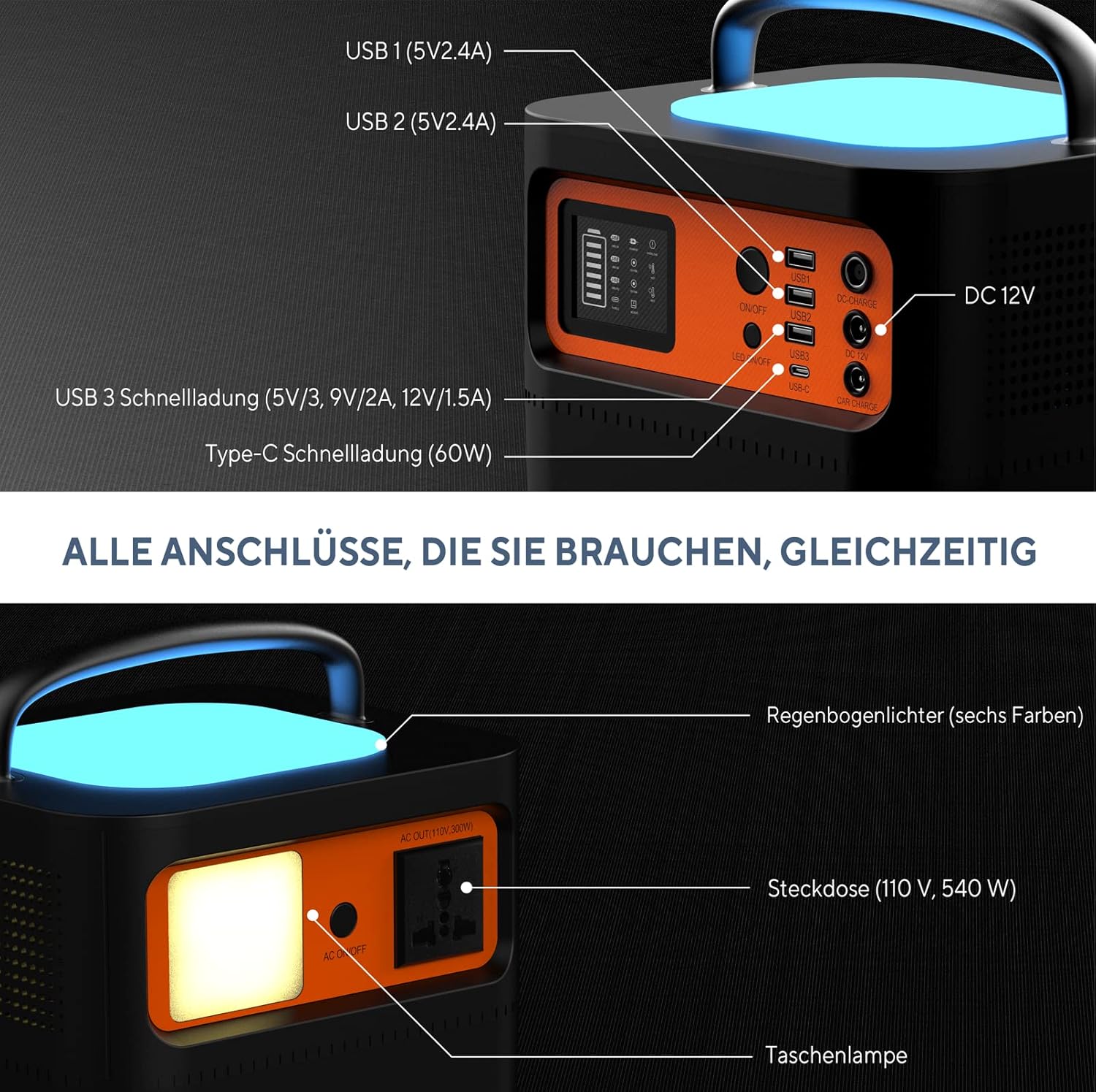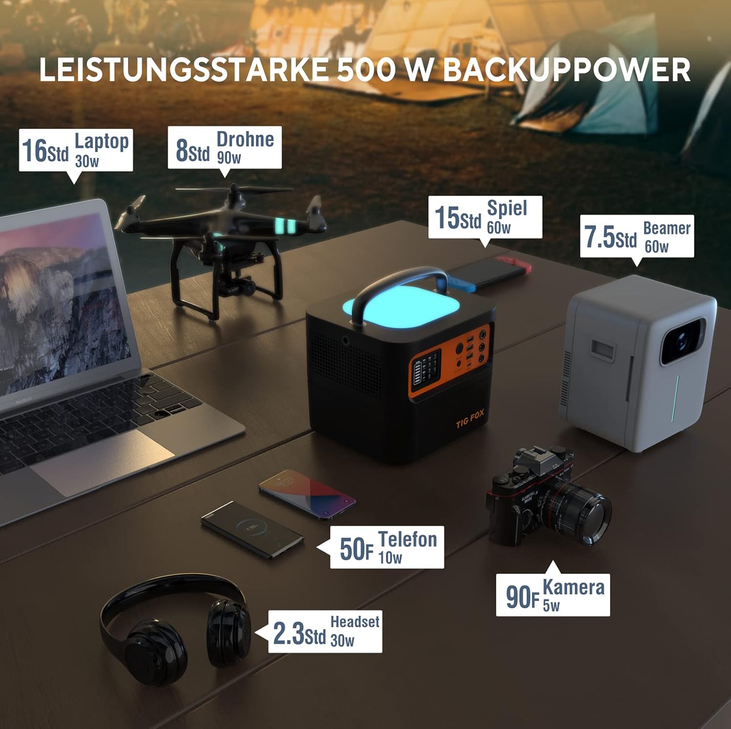 پاوربانک قابل حمل TIG FOX 500W، ژنراتور خورشیدی 540 وات