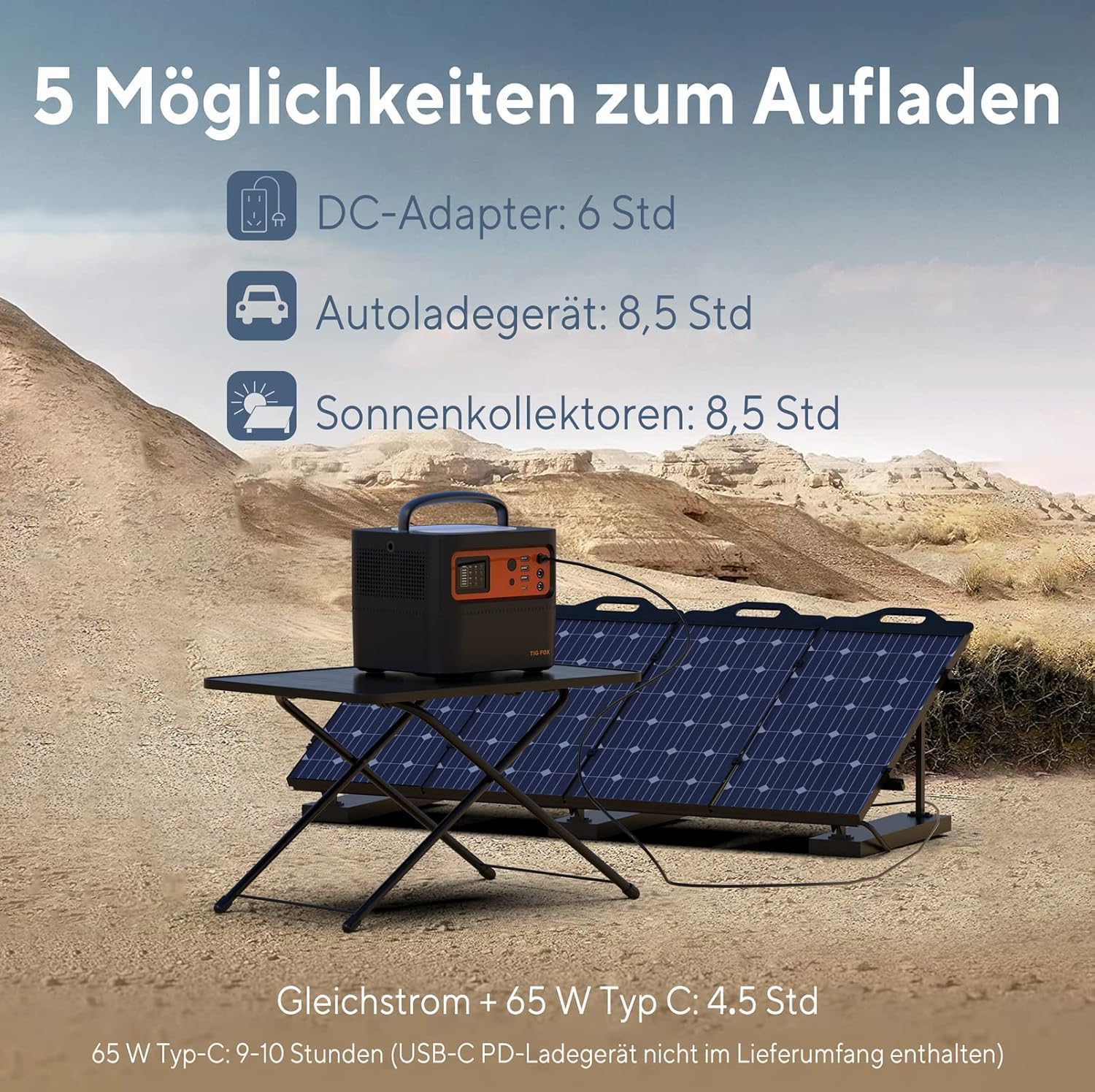 - 3 روش قابل شارژ و طراحی قابل حمل: ژنراتورهای خورشیدی TIG FOX 6 ساعت برای شارژ از طریق سوکت، 8.5 ساعت از طریق شارژ خودرو، 8.5 ساعت از طریق پنل خورشیدی (بدون پنل خورشیدی) طول می کشد. می توان آن را به طور همزمان شارژ و دشارژ کرد. مجهز به صفحه نمایش LCD است که به وضوح وضعیت باتری باقیمانده، شارژ، دشارژ، پورت های خروجی و اضافه بار را نشان می دهد.