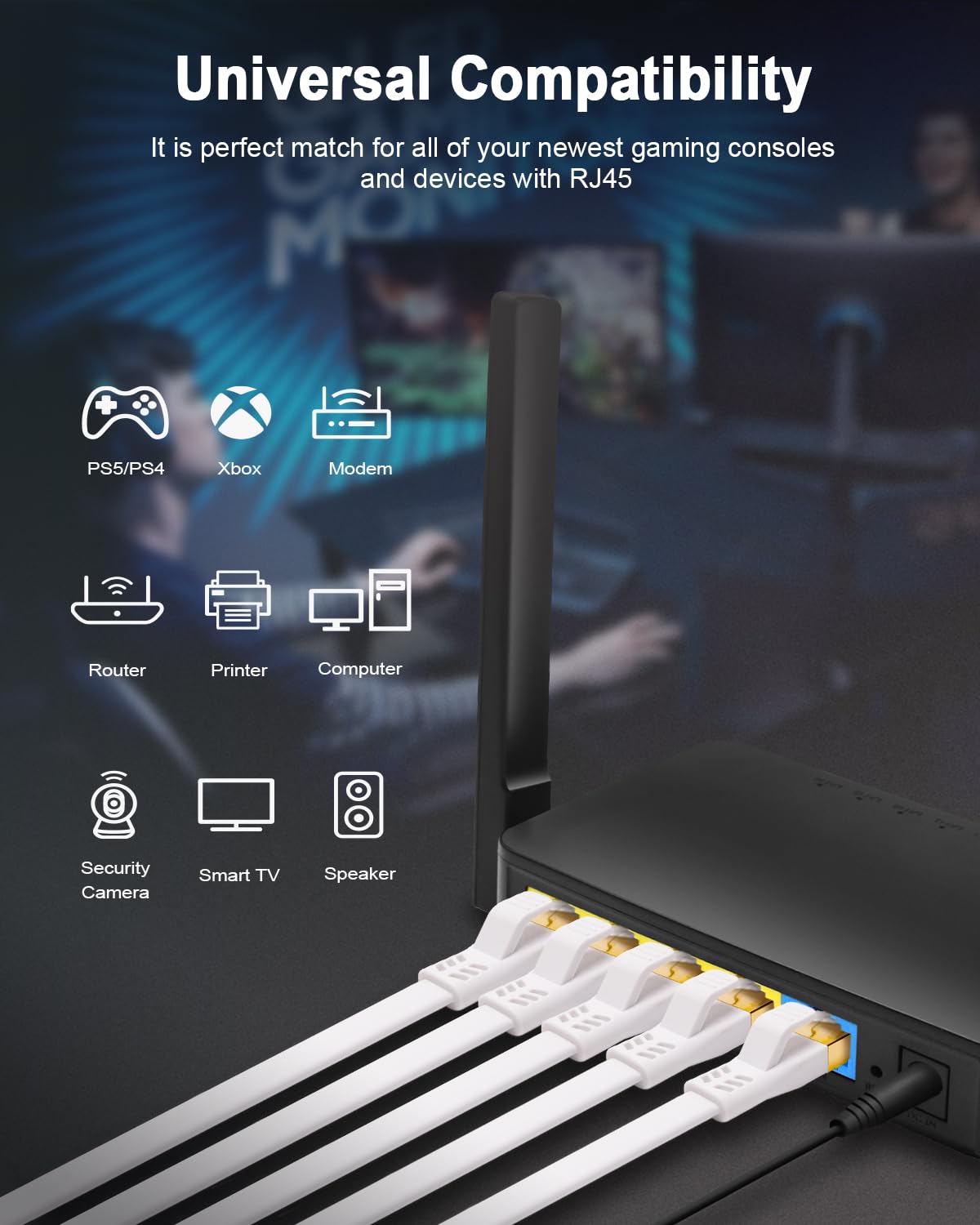 🏠 سازگار با دستگاههای مختلف: مودم، روتر، لپتاپ، PC، کنسولهای بازی، تلویزیون هوشمند، NAS و سرورهای شبکه.