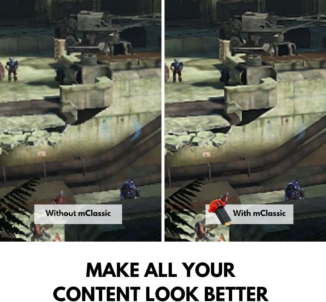 روشن/خاموش مقیاسبندی: تقویتکننده بازیهای ویدیویی mClassic پیشرفت شگفتانگیزی در تصاویر ارائه میدهد، اما در صورتی که تصمیم به غیرفعال کردن ویژگیها دارید، نیازی به جدا کردن آن از چیزی نیست! شما فقط می توانید آن را با استفاده از سوئیچ کشویی خارجی خاموش کنید!