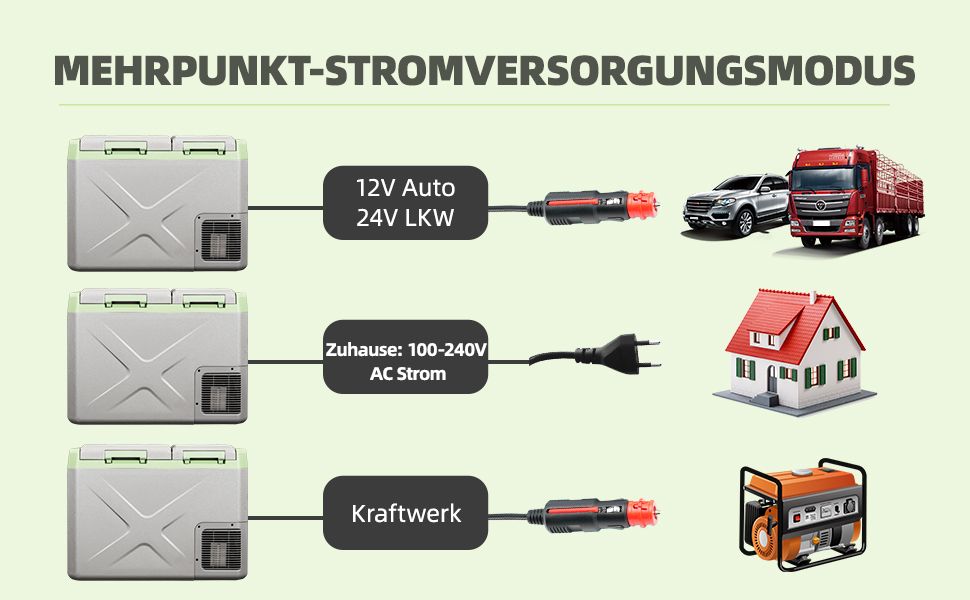 گزینه های برق AC و DC: یخچال مسافرتی ماشین 38 لیتر 12ولت مدل XD55 برند Alpicool مجهز به کابل برق AC و DC است که آن را برای استفاده در خانه یا در حال حرکت عالی می کند.