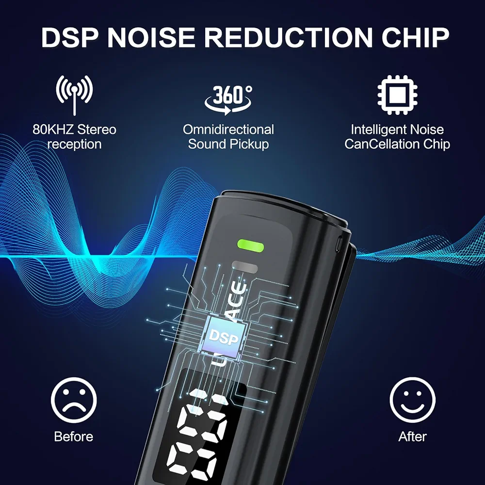کیفیت صدا بهتر با کاهش نویز: تراشه DSP برای حذف نویز محیطی در فرستندهها وجود دارد، که صدای ضبط شده را شفافتر میکند.