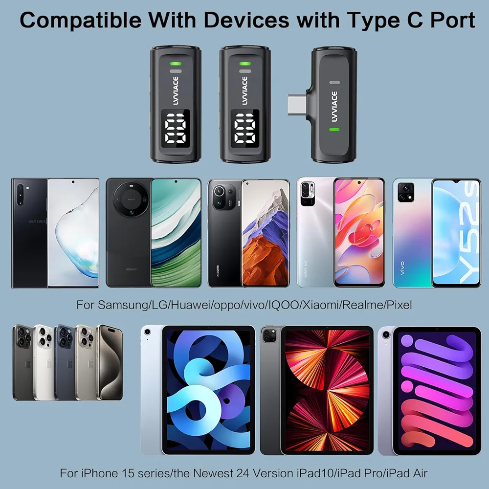 رابط گیرنده (Receiver): سهگانه — Lightning (برای دستگاههای اپل مثل آیفون/آیپد)، USB-C (اندروید، لپتاپ) و جک ۳.۵ میلیمتری (برای دوربین یا سایر دستگاهها).